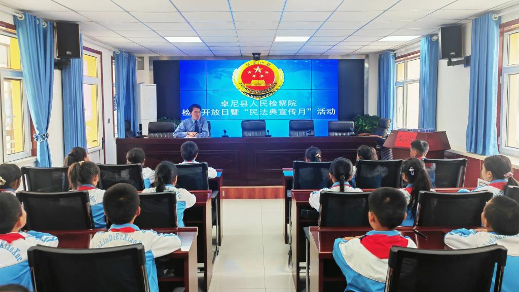 卓尼县检察院举办民法典颁布五周年检察开放日活动,邀请县人大代表、政协委员、司法局、法院、教师代表及25名小学生走进检察机关,参观相关工作场所,观看“秘境卓尼我的家”司法救助宣传片,通过沉浸式感受和聆听现场讲解,多维度了解检察工作。
