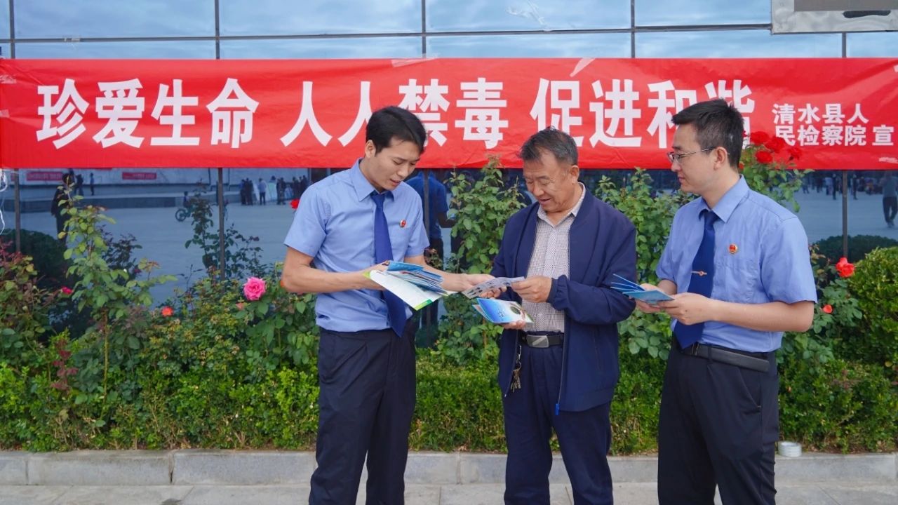 白银市平川区、泾川县、靖远县、清水县、临洮县检察院组织开展“6.26”国际禁毒日集中宣传活动。检察干警通过发放宣传册、摆放展板、以案释法等方式,向群众普及毒品的种类、危害及相关法律法规,并以案释法,揭露毒品对个人、家庭和社会的严重危害,警示广大群众远离毒品,珍爱生命。
