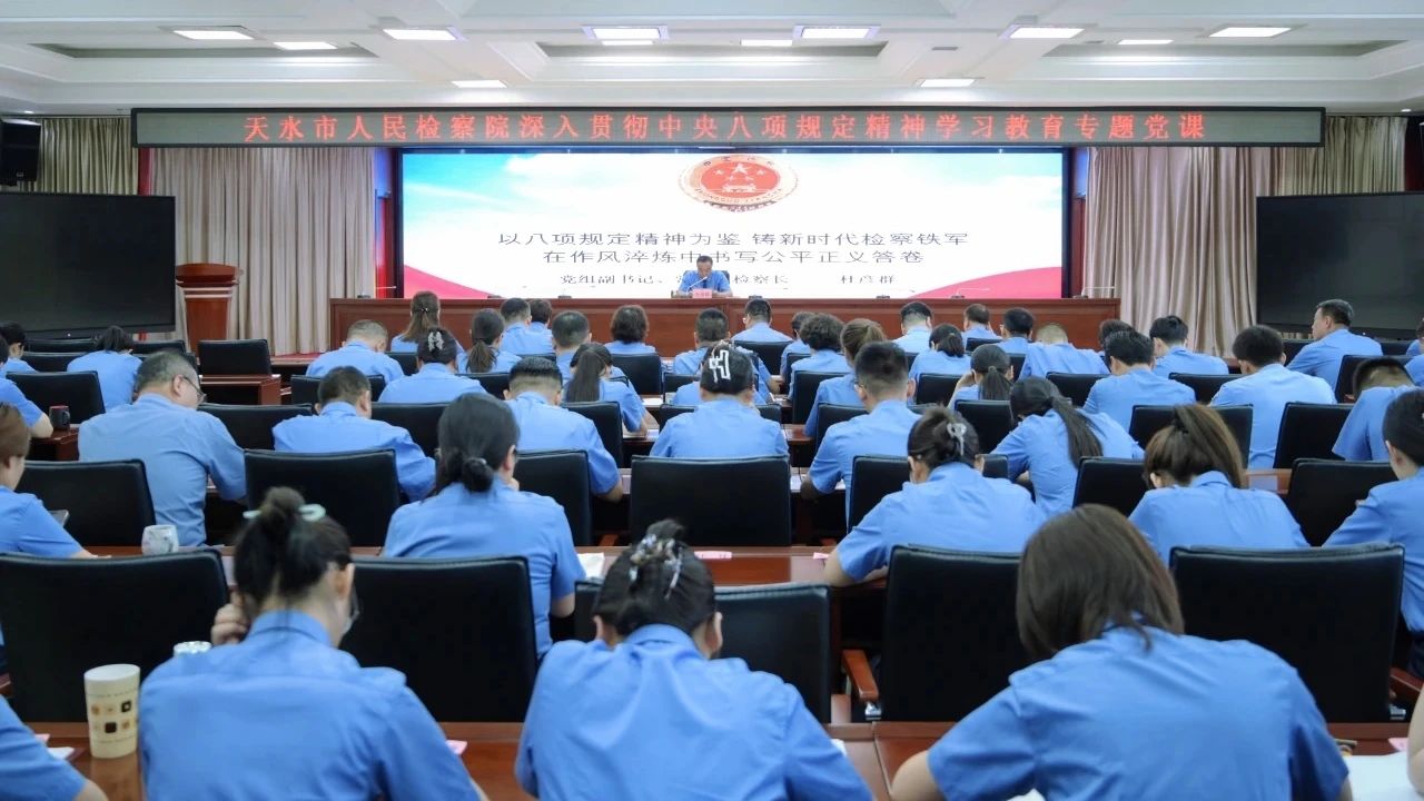 清风护航,方能行稳致远。“善除害者察其本,善理疾者绝其源。”作风建设,是检察铁军永恒的课题。这个“七一”,全省检察机关将深入贯彻中央八项规定精神学习教育作为核心旋律,让清廉之风吹拂检察履职的每个角落。甘南州检察院党组书记讲授《锲而不舍落实中央八项规定精神》专题党课,强调“以优良党风引领检察工作走深走实”。永登县、正宁县、徽县、天祝县、清水县等地检察院党组书记纷纷带头登台讲党课,要求干警筑牢廉洁从检防线,锤炼过硬作风,永葆清廉本色,思想的熔炉持续升温。