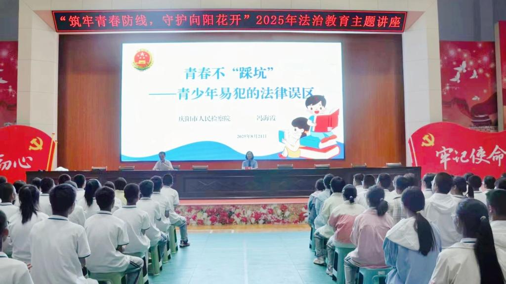 庆阳市检察院检察官到市第一中学,以《青春不“踩坑”》为题为高一学生带来主题讲座,围绕未成年人常见认知误区,通过以案释法,详细介绍专门学校制度及治安管理处罚法新变化,引导学生崇尚法治、识别犯罪陷阱。