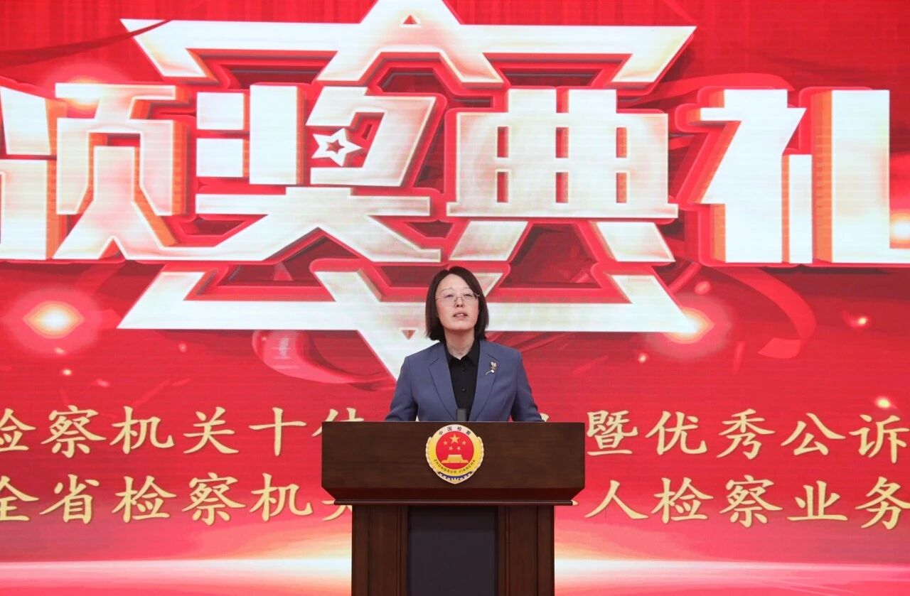 党组副书记、副检察长柳小惠为获得全省十佳公诉人称号、全省未成年人检察业务标兵的干警颁奖。
