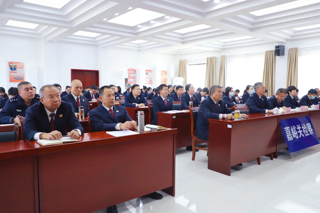 机关全体干警在主会场聆听讲座,各地干警以视频形式在分会场同步学习。