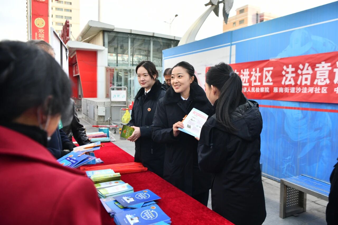 精心部署,联合雁南街道沙洼河社区在大润发广场举办“普法入社区、法治伴你行”普法宣传活动,通过“内铸忠诚、外普法治”双向发力,让宪法精神深植检察初心,浸润群众心田,为法治建设注入检察力量。