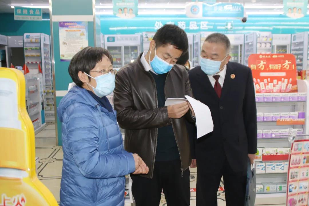 在对部分药店的检查中,检查人员对近期群众急需的口罩、消毒液、医用酒精等疫情防控物品、药品的生产资质、生产日期进行了仔细摸排,详细询问并查看了商品进货渠道相关票据及储量等,并要求药店经营者严格药品经营行为,做好来店人员实名登记、测温等工作。