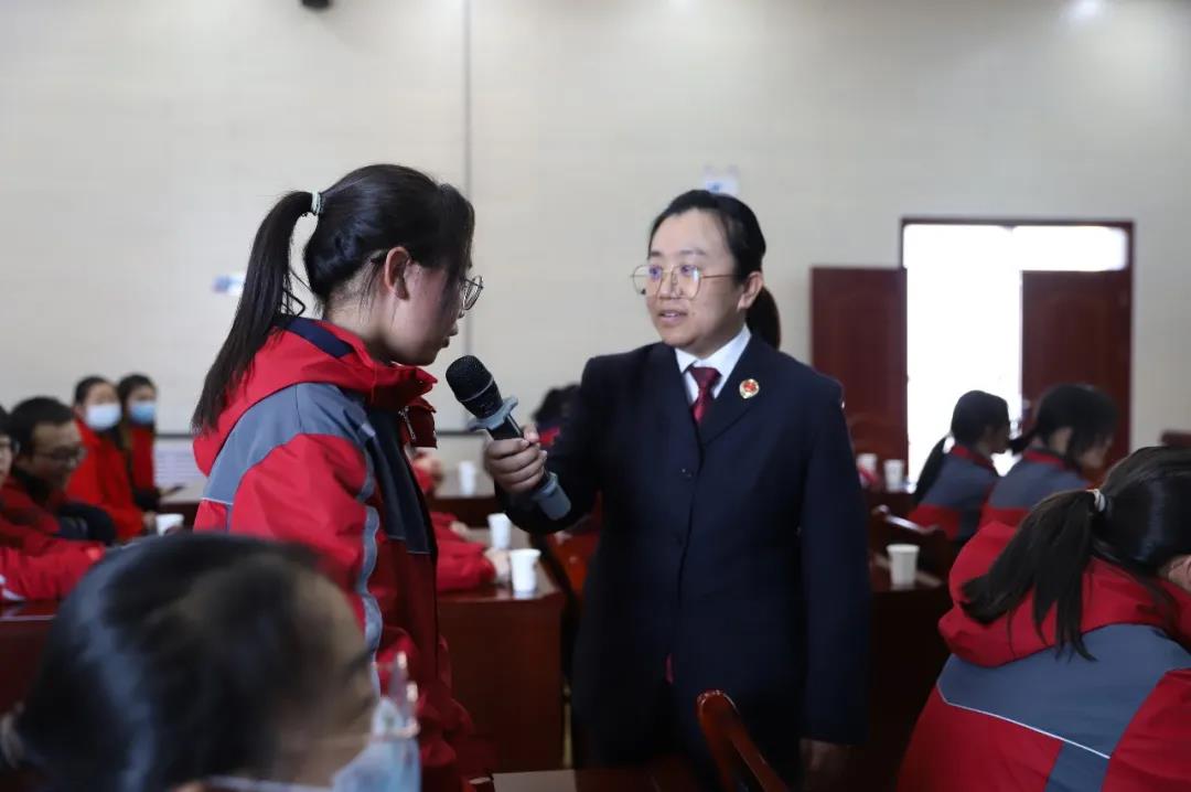 “同学们,你们知道宪法与你们的生活有什么关系吗?”“有,人权”“什么是人权”“自由”“那你们在家有没有人权?你妈妈有没有逼你穿秋裤?是不是你喜欢学英语他们非要逼你学数学”……检察干警张婧以幽默日常的提问方式,形象地向同学们和家长介绍了宪法和我们日常生活的关系。