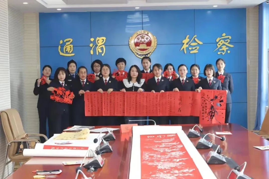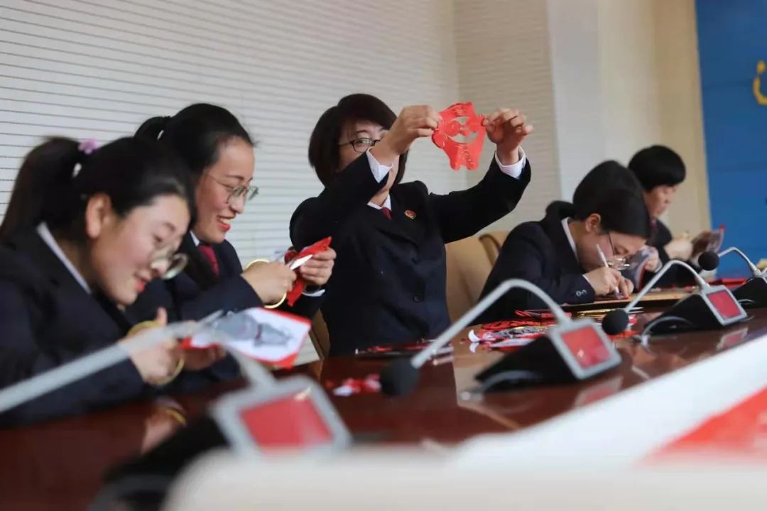 在“三八”国际劳动妇女节来临之际,通渭县检察院开展“巾帼展巧手,剪纸献奥运”庆祝“三八”节活动。