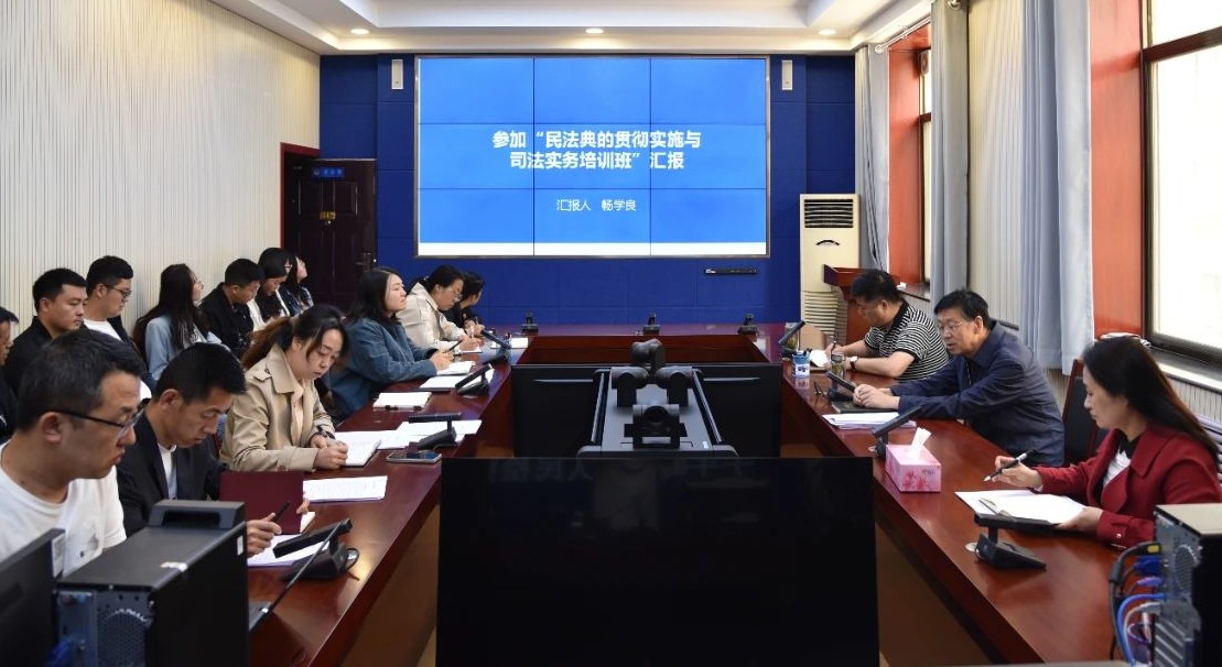 5月22日,子午岭林区检察院组织开展传导式培训,该院第二检察部干警畅学良向全院干警分享交流了参加最高检第一期民法典贯彻实施与司法实务培训班的学习收获。