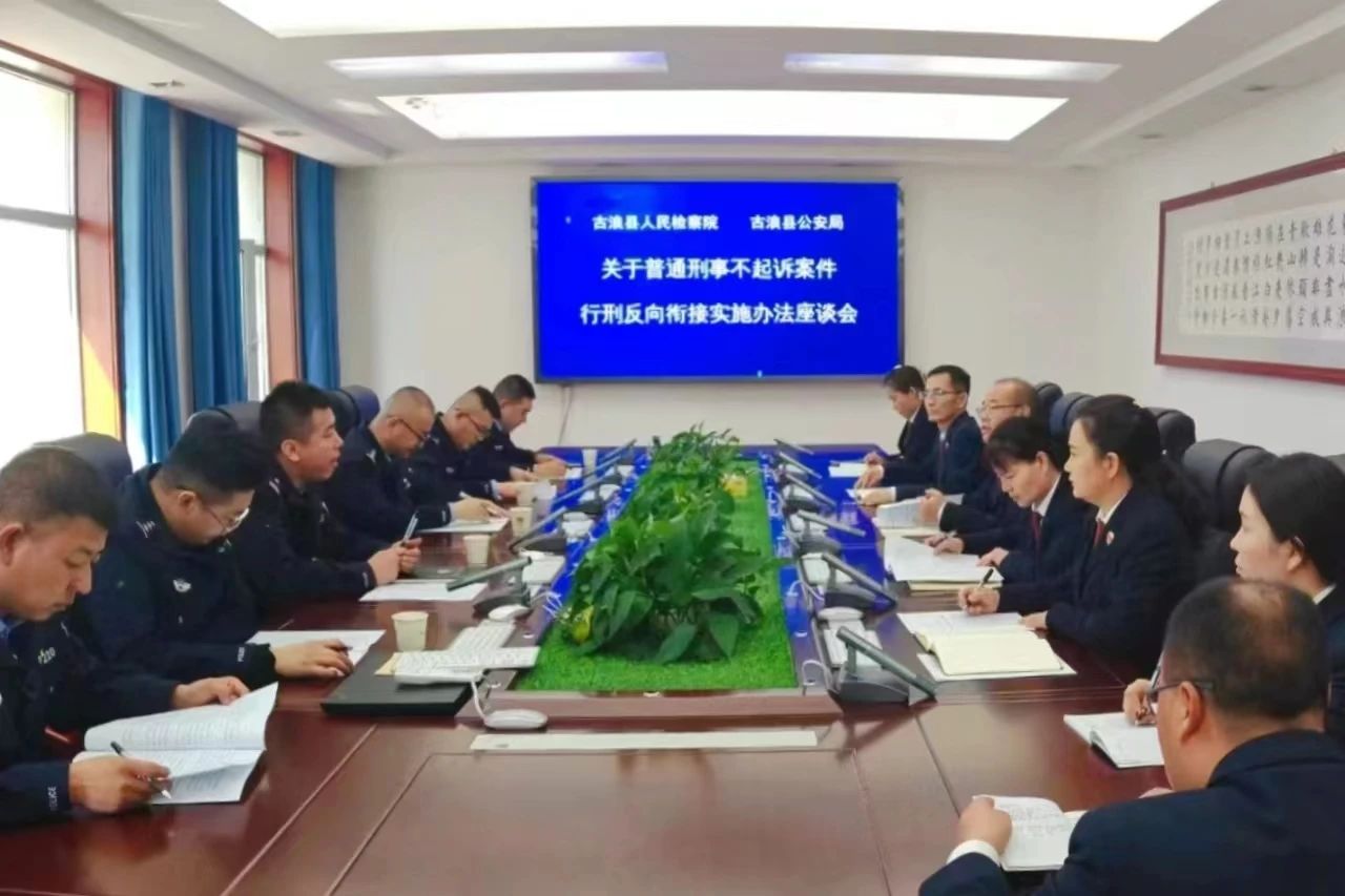 近日,古浪县检察院与县公安局召开行刑反向衔接工作联席会议,就刑事不起诉案件如何实现刑事处罚和行政处罚“无缝对接”、如何合力推动依法行政和公正司法等问题进行座谈,并会签《关于普通刑事不起诉案件行刑反向衔接实施办法》(以下简称《办法》)。