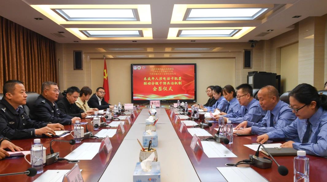 近日,兰州市城关区检察院、兰州市公安局城关分局、兰州市城关区工业和信息化局召开座谈会,签订《未成年人涉电话卡犯罪联动分级干预共治协议》,建立未成年人涉电话卡犯罪联动分级干预共治机制,中国移动兰州分公司、中国联通兰州市分公司、中国电信兰州分公司代表参加会议。