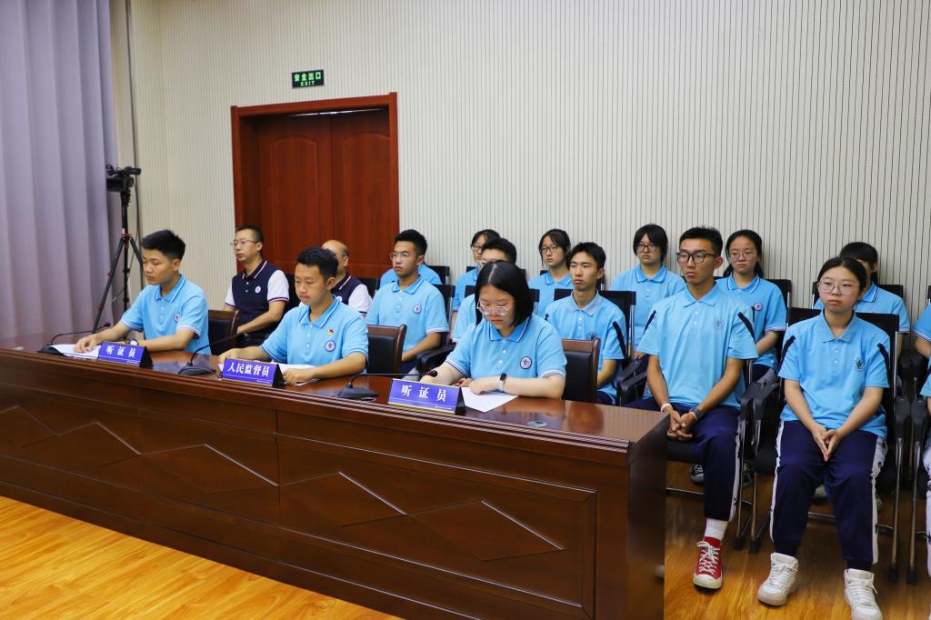 据介绍,此次模拟检察听证案件选取了该院办理的一起未成年人故意伤害案,经检察官前期以案释法和培训说明,同学们很快掌握了所扮演法律角色的特点,对检察听证流程有了更深入的认识,在模拟检察听证现场,“沉浸式”演绎真实还原了检察官介绍案情、当事人及相关人员分别说明情况、听证员就听证问题进行提问并讨论、当事人发表意见等环节。