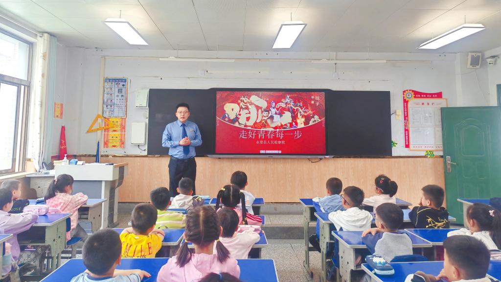 “叮铃铃……”伴着欢快的上课铃声,永登县新城区小学教室内40多张稚嫩的面孔如雨后春笋般齐刷刷昂起。检察官手持激光笔,带孩子们展开了一趟沉浸式法治之旅。