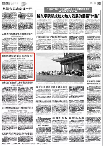 2020年7月17日甘肃日报刊发《扫黑除恶检察建议书集中公开送达会议召开 胡焯朱玉出席并讲话》一文。
