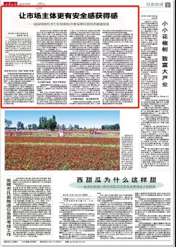 2020年8月4日甘肃日报刊发《让市场主体更有安全感获得感 ——我省检察机关打好检察组合拳保障民营经济健康发展》一文。