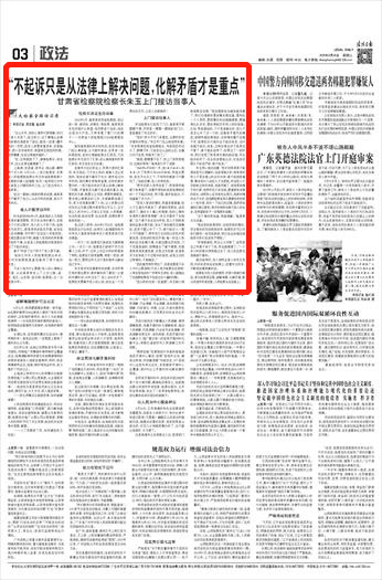 2020年8月26日法治日报第三版刊发《“不起诉只是从法律上解决问题,化解矛盾才是重点”澳门彩