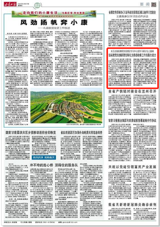 2020年8月27日甘肃日报刊发《朱玉在澳门彩