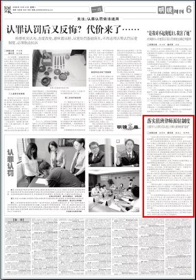 2020年10月13日检察日报刊发《落实值班律师派驻制度——白银平川:认罪认罚从宽让当事人感知检察“温暖”》一文。