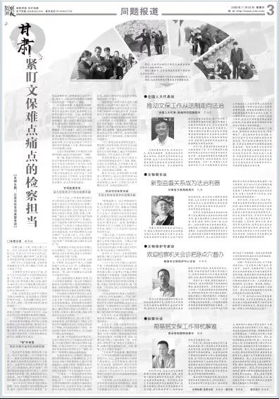 2020年11月22日检察日报专版刊发《甘肃:紧盯文保难点痛点的检察担当》一文。