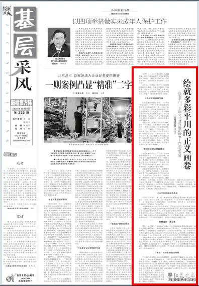 2020年12月9日检察日报刊发《绘就多彩平川的正义画卷——白银平川:主题文化建设推动检察工作创新发展》一文。