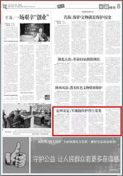 2021年3月25日检察日报8版刊发《定西安定:军地协作护烈士荣光》一文。