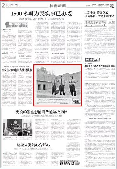 2021年9月6日,检察日报二版《视窗》刊发反映甘肃省永昌县检察院公益诉讼工作的图片新闻。