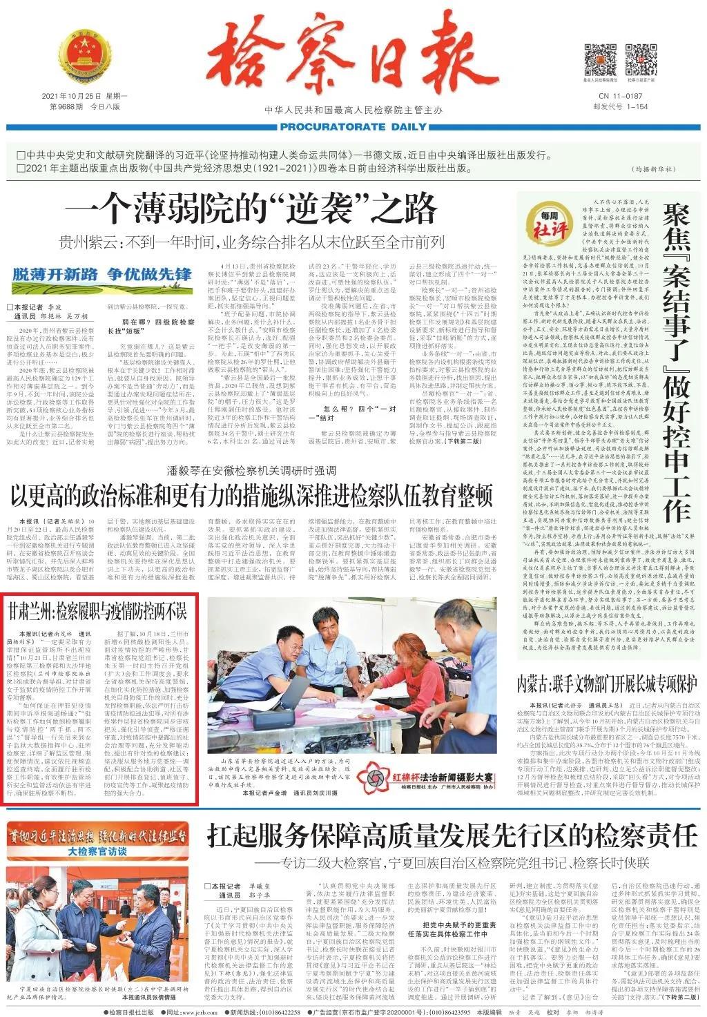 2021年10月25日,检察日报头版刊发新闻《甘肃兰州:检察履职与疫情防控两不误》。