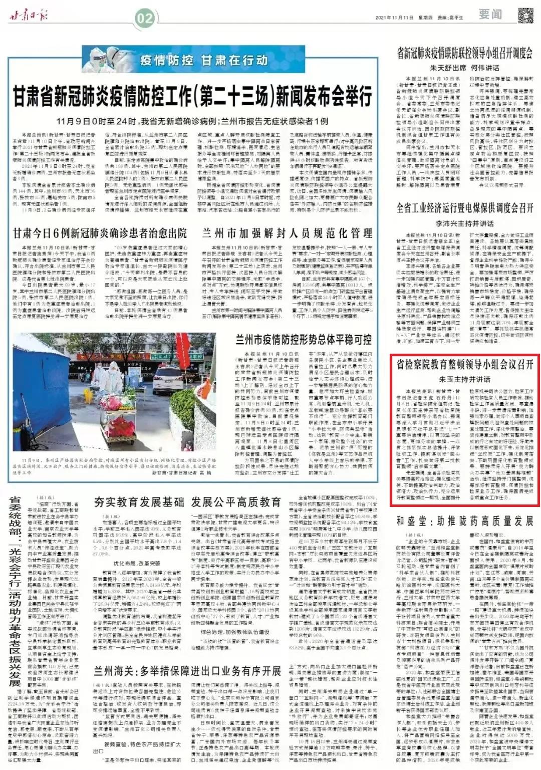 2021年11月11日,甘肃日报二版刊发《澳门彩