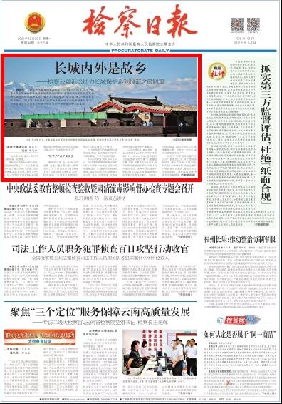2021年12月20日,检察日报头版头条刊发《长城内外是故乡——检察公益诉讼助力长城保护系列报道之破题篇》。