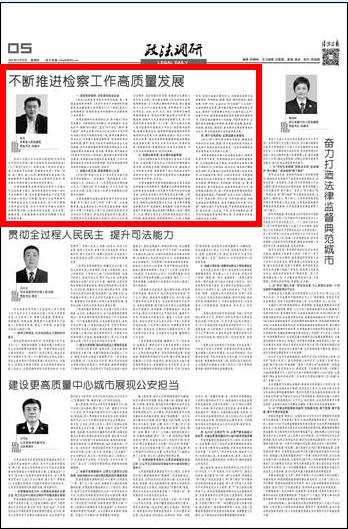 党组书记、检察长朱玉署名文章《不断推进检察工作高质量发展》。