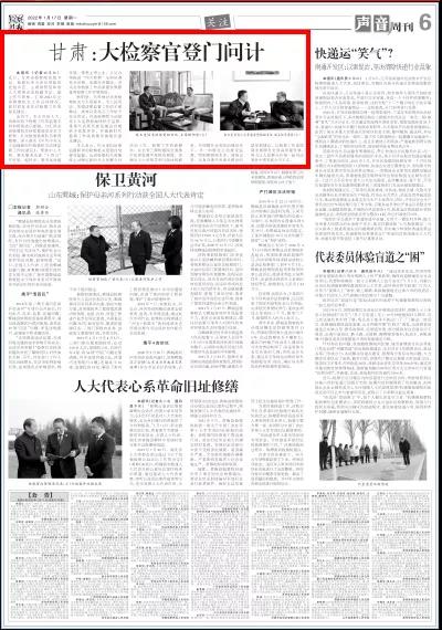 2022年1月17日,检察日报六版刊发《甘肃:大检察官登门问计》。