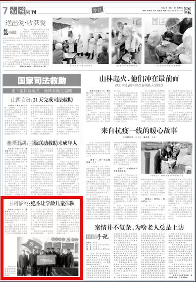 2022年1月21日,检察日报七版刊发《甘肃临洮:绝不让学龄儿童掉队》。