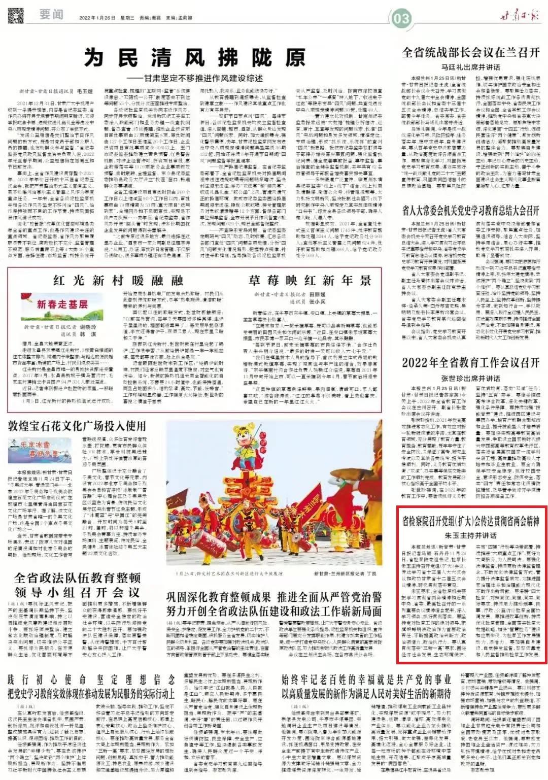 2022年1月26日,甘肃日报三版刊发《澳门彩