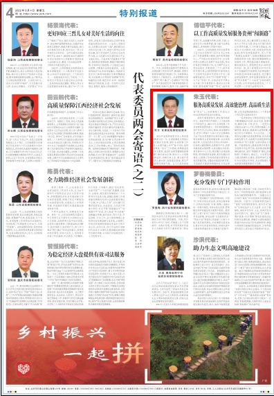 2022年3月4日检察日报四版刊发《朱玉代表:服务高质量发展、高效能治理、高品质生活》。