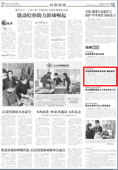 2022年3月24日检察日报二版刊发《 巩固教育整顿成果深植“廉政基因”》。