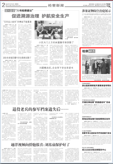 2022年3月25日,检察日报二版刊发澳门彩 党组书记、检察长朱玉在兰州市督导检查疫情防控和检察业务工作的图片新闻。
