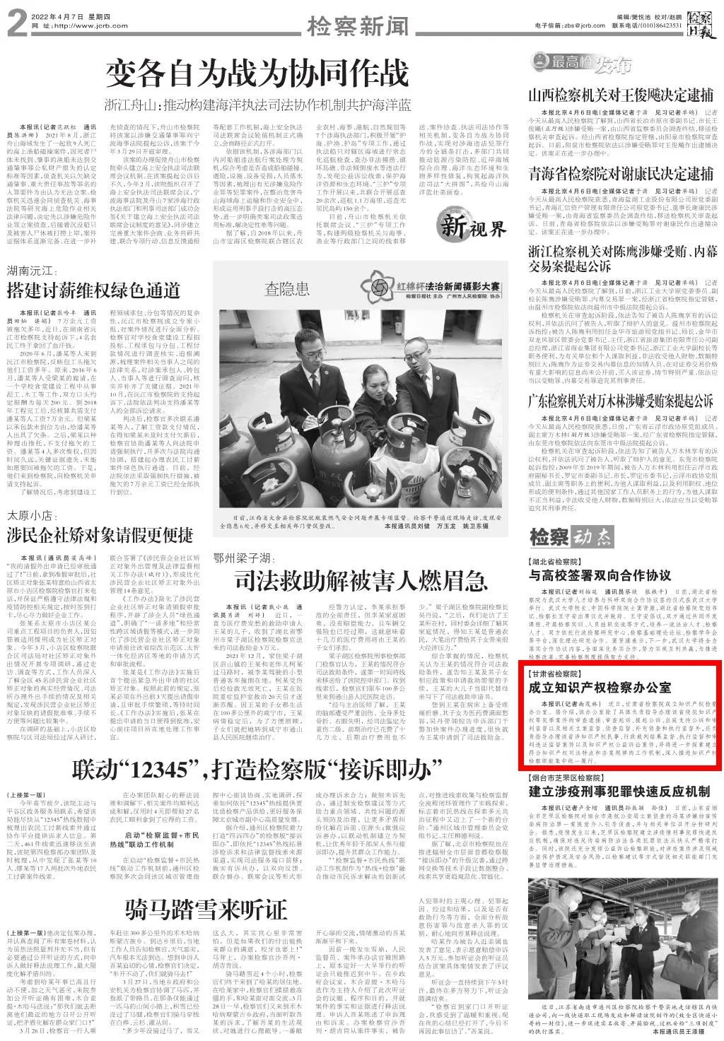 2022年4月7日,检察日报二版刊发新闻《澳门彩