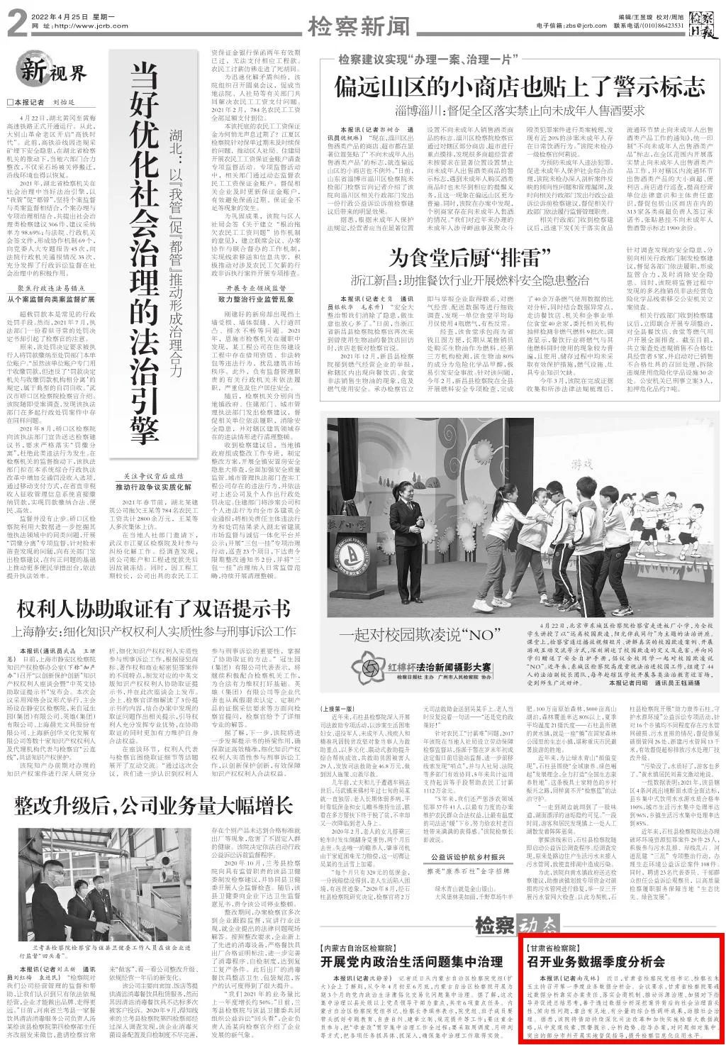 2022年4月25日,检察日报二版刊发新闻《澳门彩
