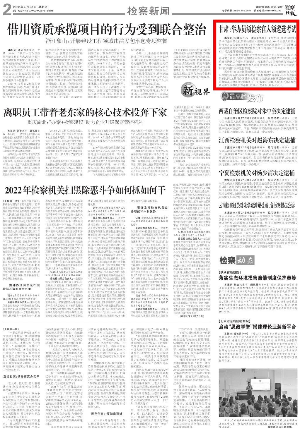 2022年4月28日,检察日报二版刊发新闻《甘肃:举办员额检察官入额遴选考试》。