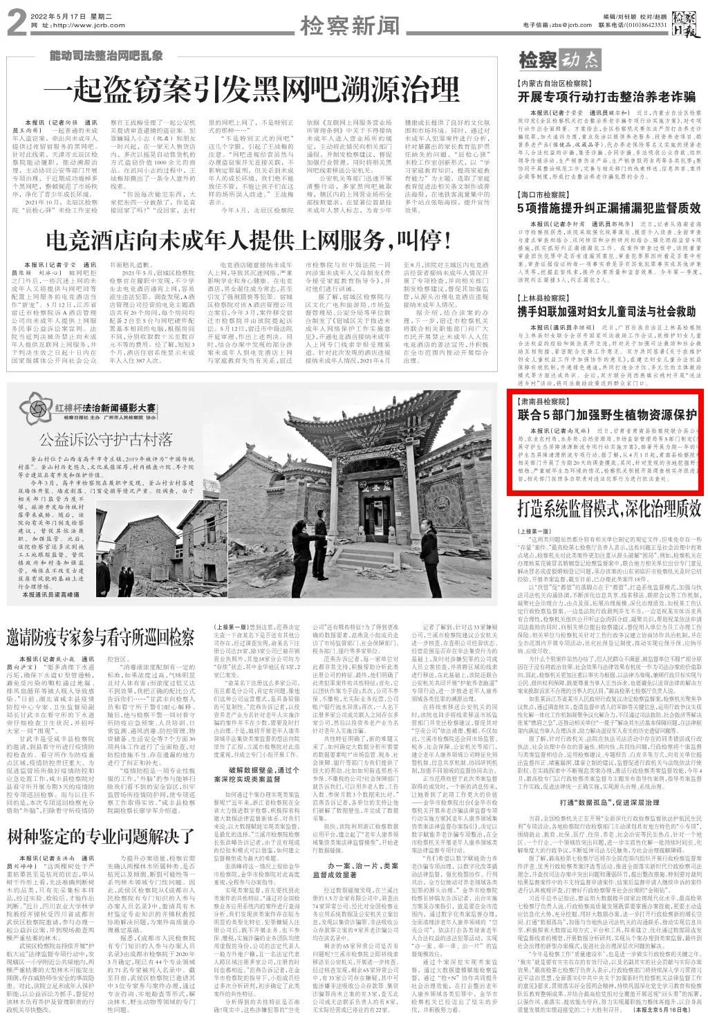 2022年5月17日,检察日报二版刊发《肃南县检察院:联合5部门加强野生植物资源保护》。