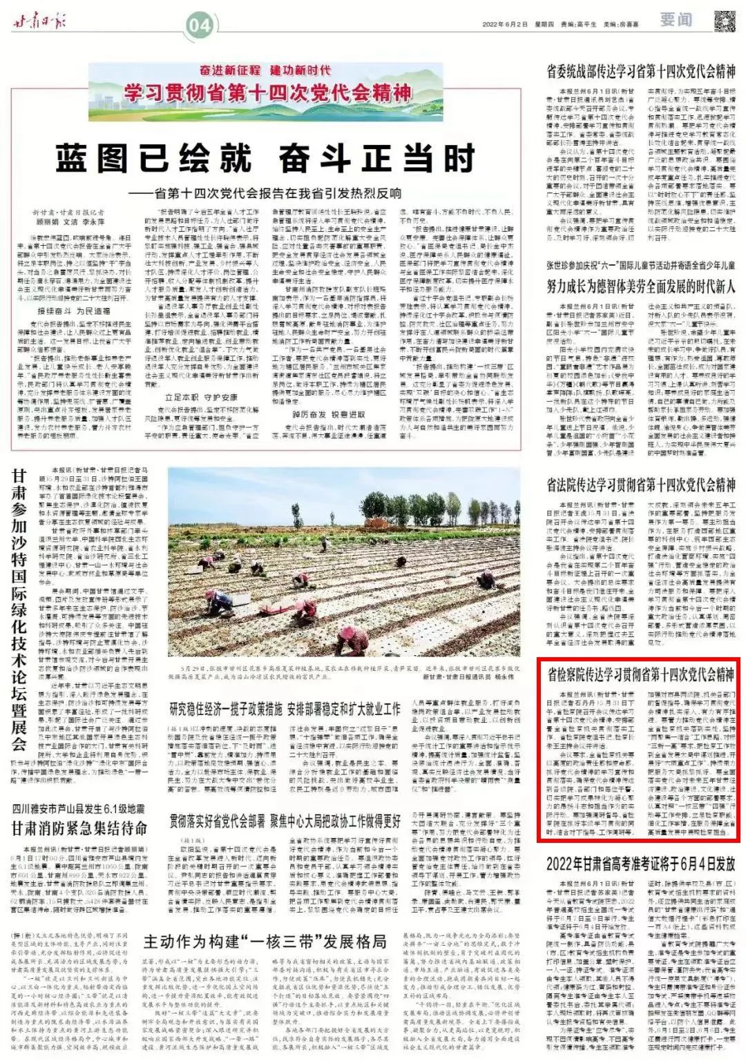 2022年6月2日,甘肃日报四版刊发《澳门彩