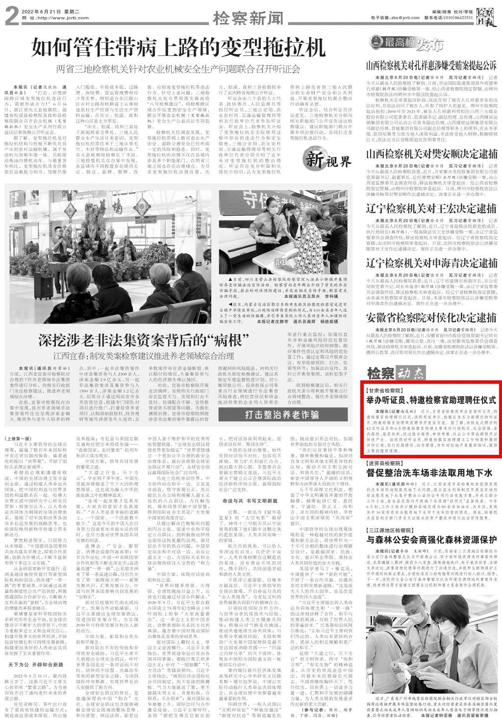 2022年6月21日,检察日报二版刊发《澳门彩