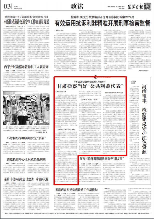 2022年8月17日,法治日报三版刊发《5年立案公益诉讼案件1.4万余件 澳门彩