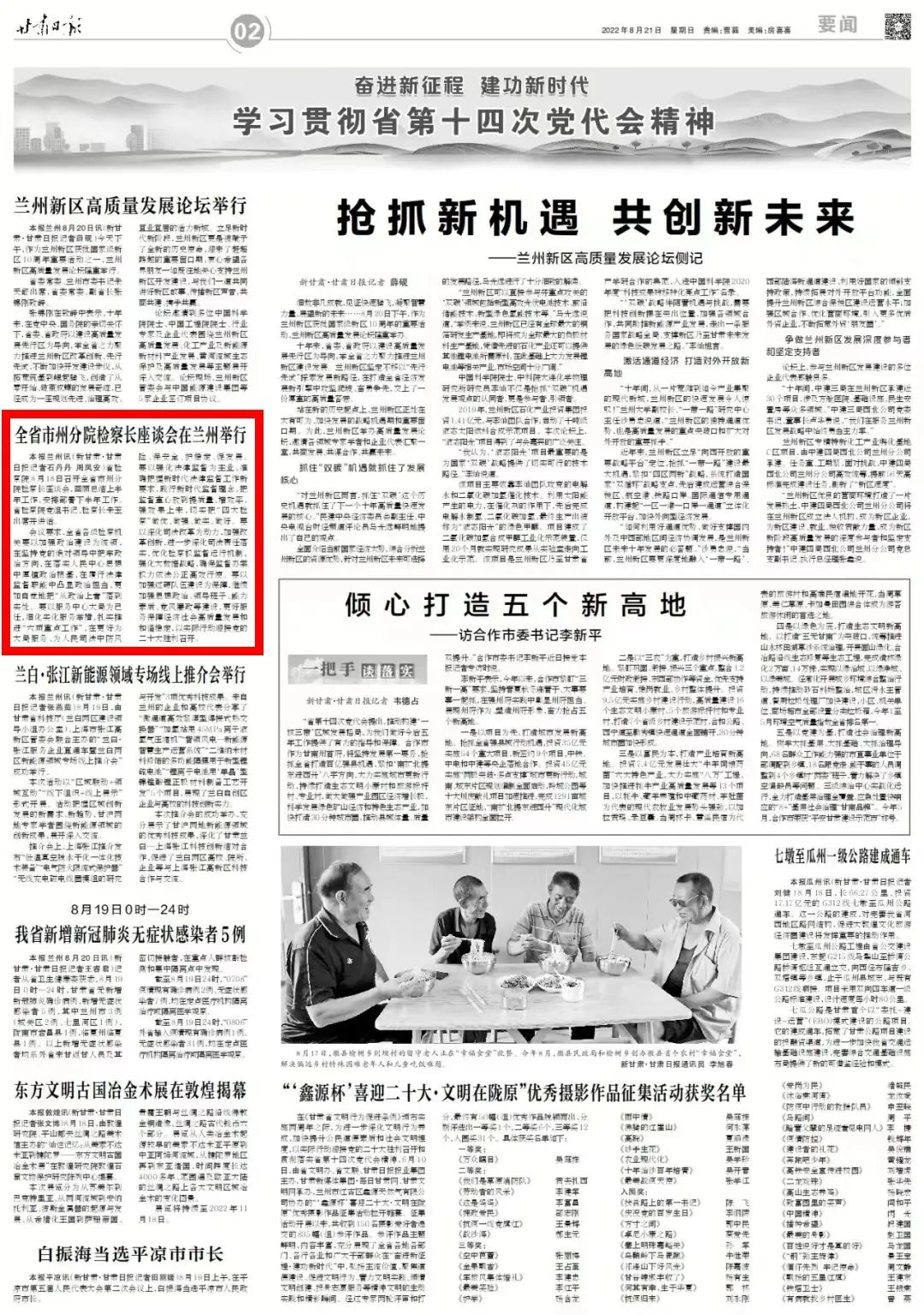 2022年8月21日,甘肃日报二版刊发《全省市州分院检察长座谈会在兰州举行》。