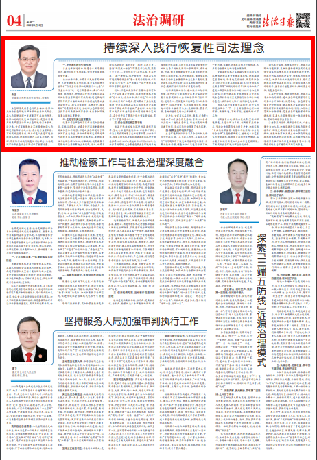 党组书记、检察长朱玉署名文章《持续深入践行恢复性司法理念》。