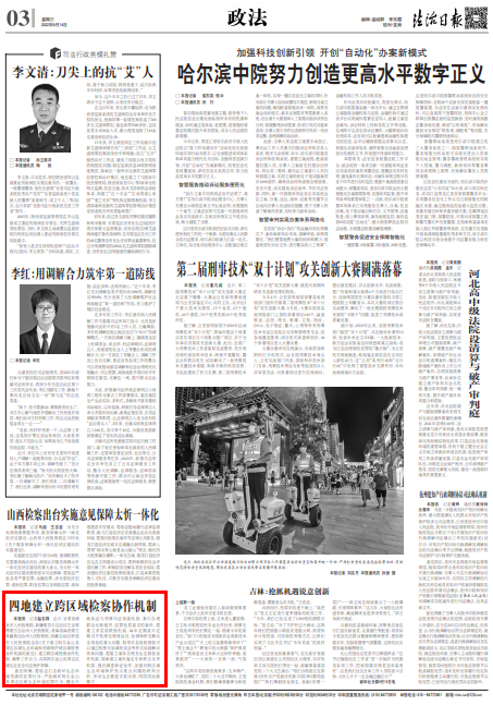 2022年9月14日,法治日报三版刊发《四地建立跨区域检察协作机制》。