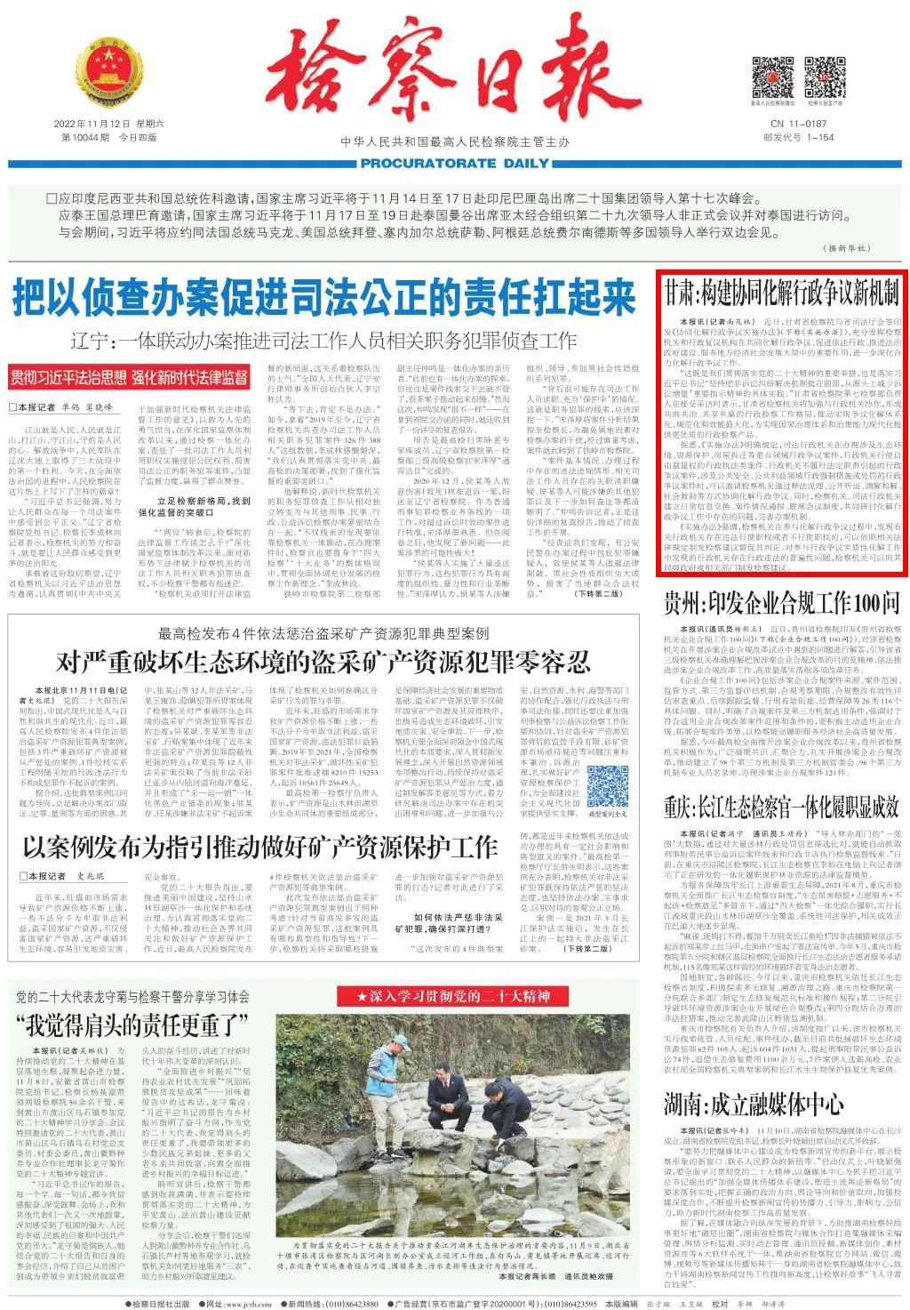 2022年11月12日,检察日报头版刊发《甘肃:构建协同化解行政争议新机制》。
