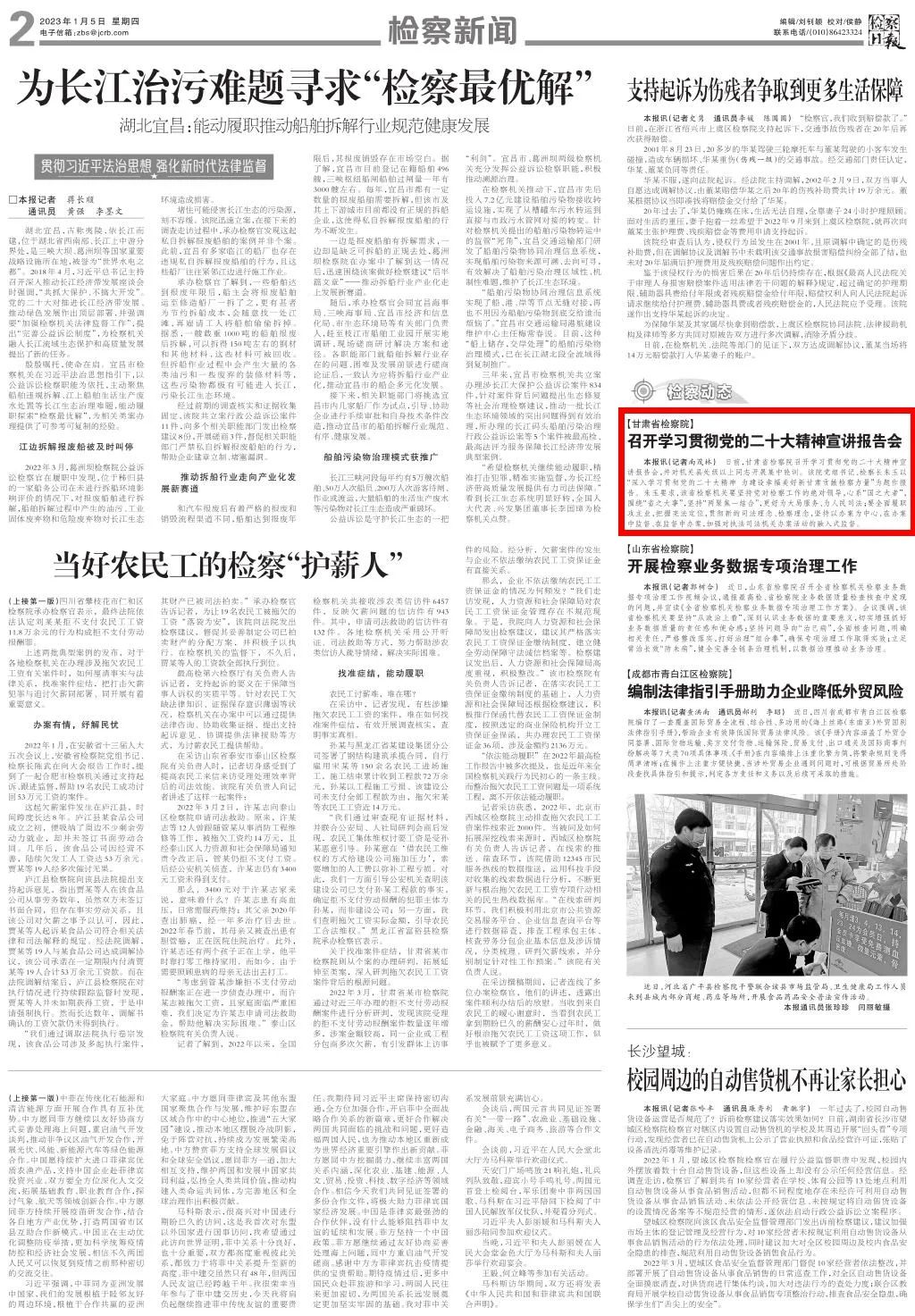 2023年1月5日,检察日报二版刊发《澳门彩