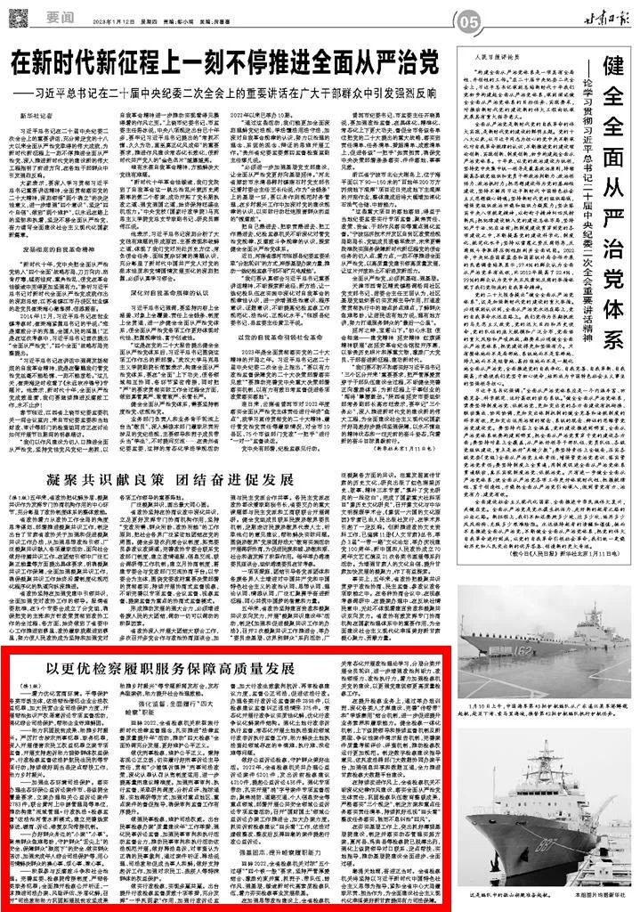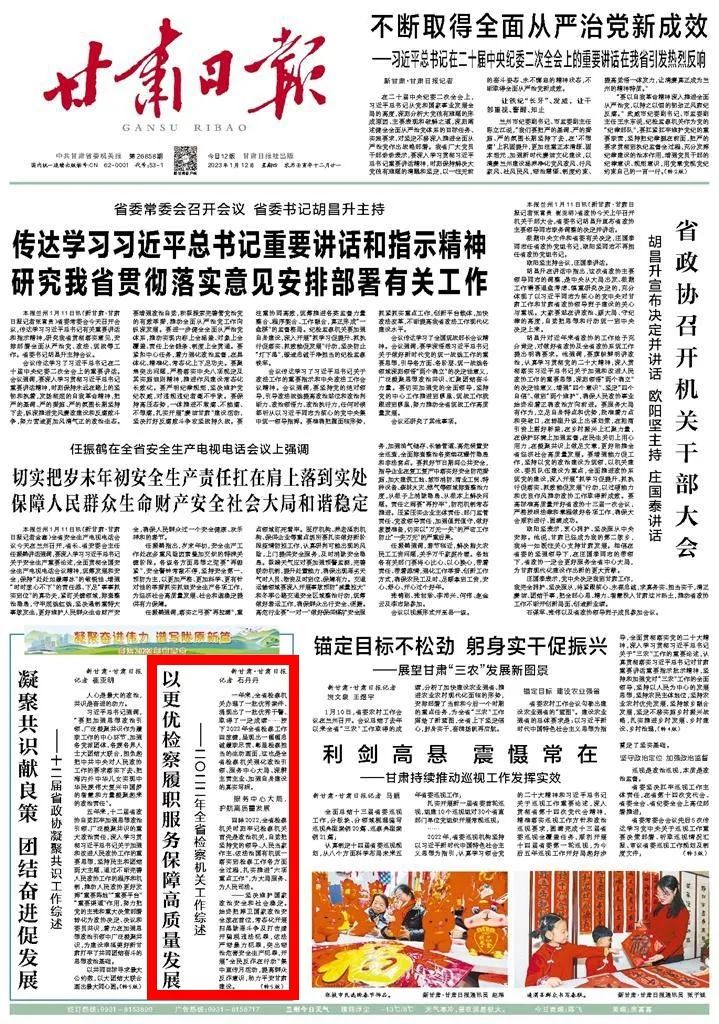 2023年1月12日,甘肃日报头版刊发《以更优检察履职服务保障高质量发展》。