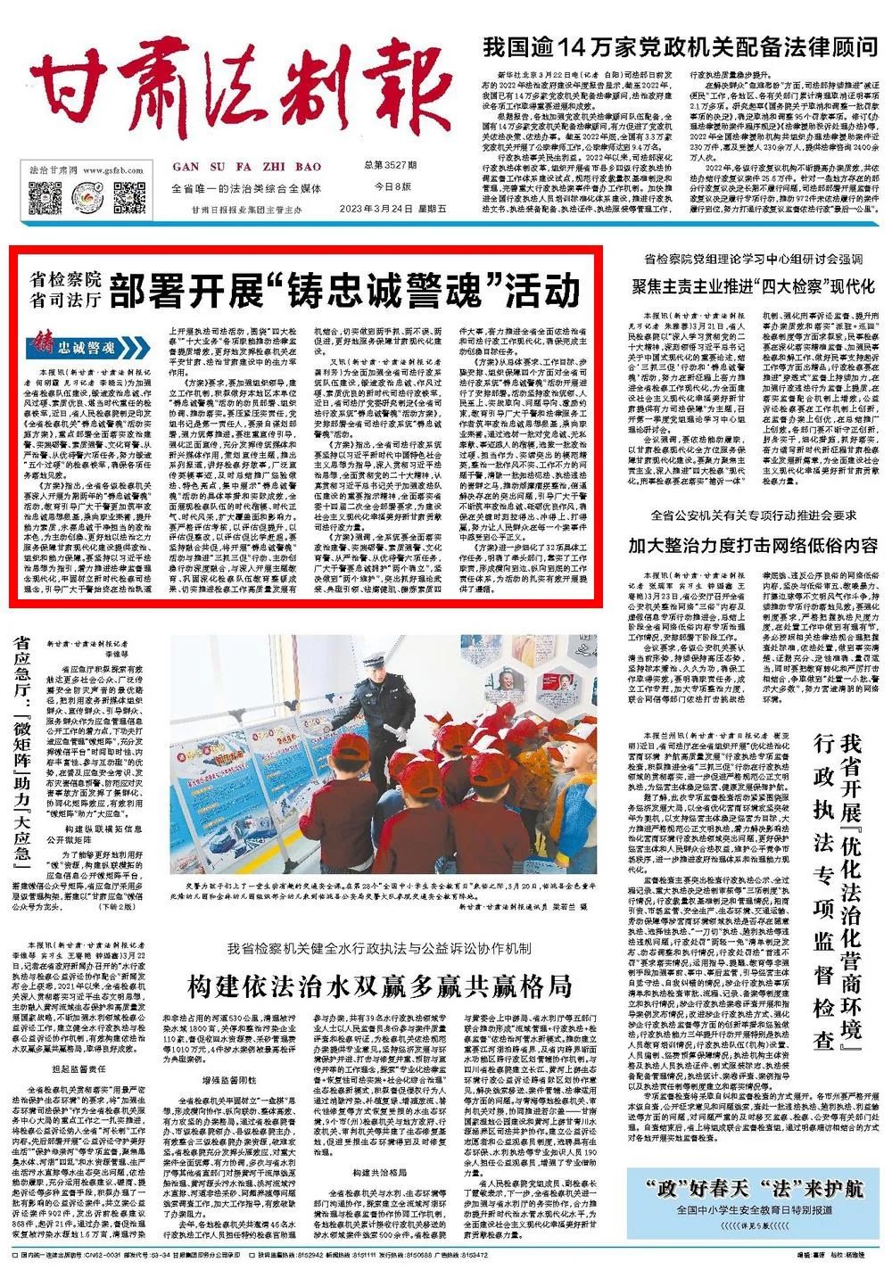 2023年3月24日,甘肃法制报头版刊发《澳门彩