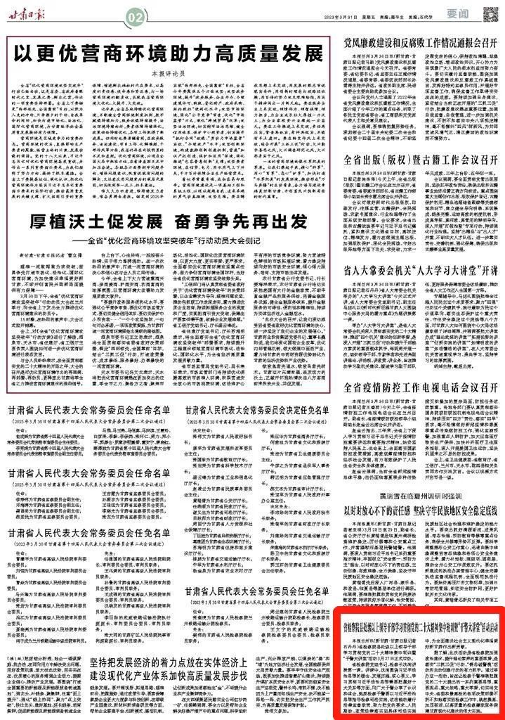 2023年3月31日,甘肃日报二版刊发《澳门彩