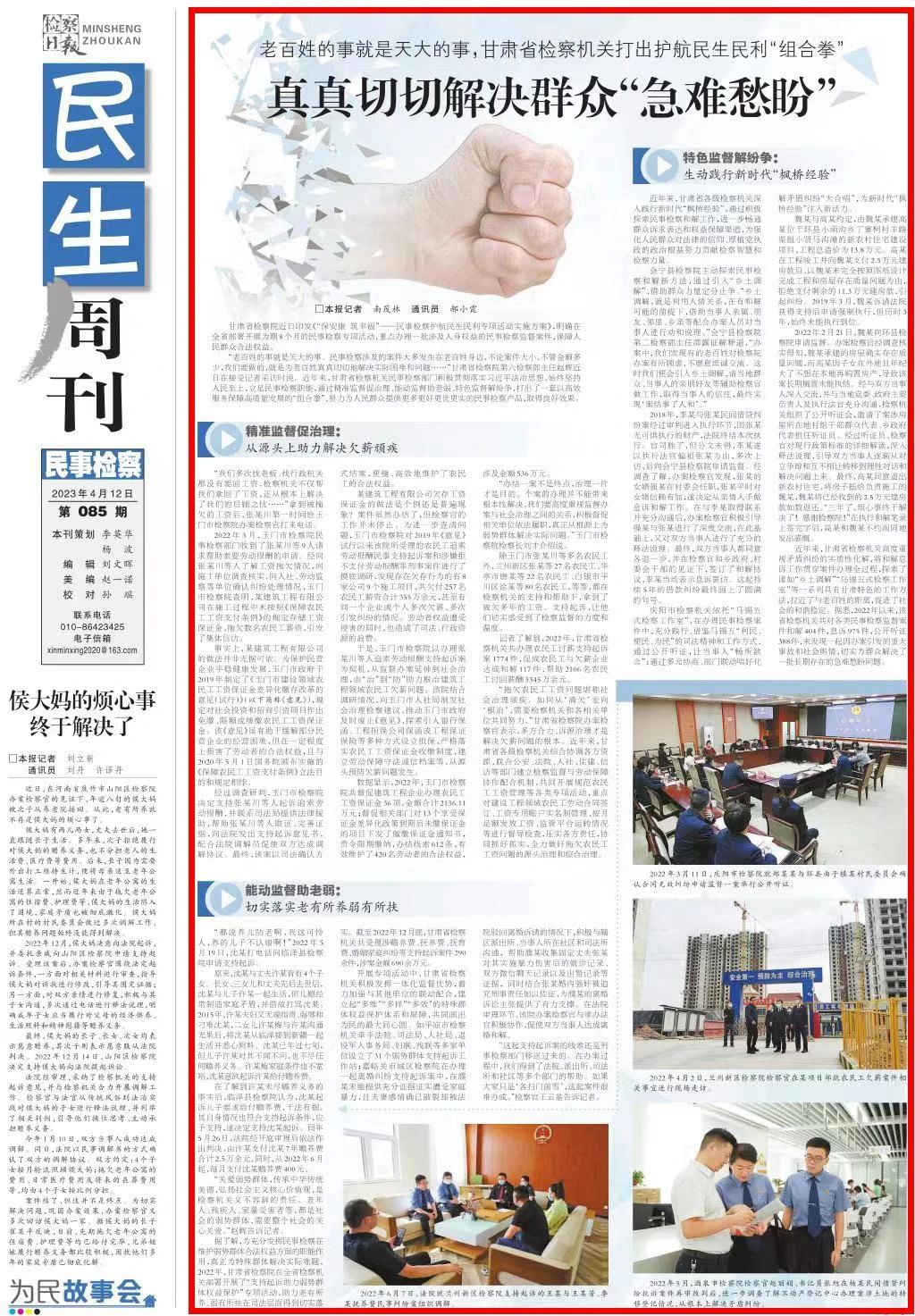 2023年4月12日,检察日报民生周刊封面刊发《甘肃:真真切切解决群众“急难愁盼”》。